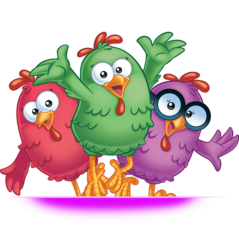Ces trois poules forment un choeur vocal, et, elles adorent chanter et danser dans les clips. Elles reflètent toute la joie et la magie de la bande, et sont vraiment très amies avec la Poulette Petit Pois.